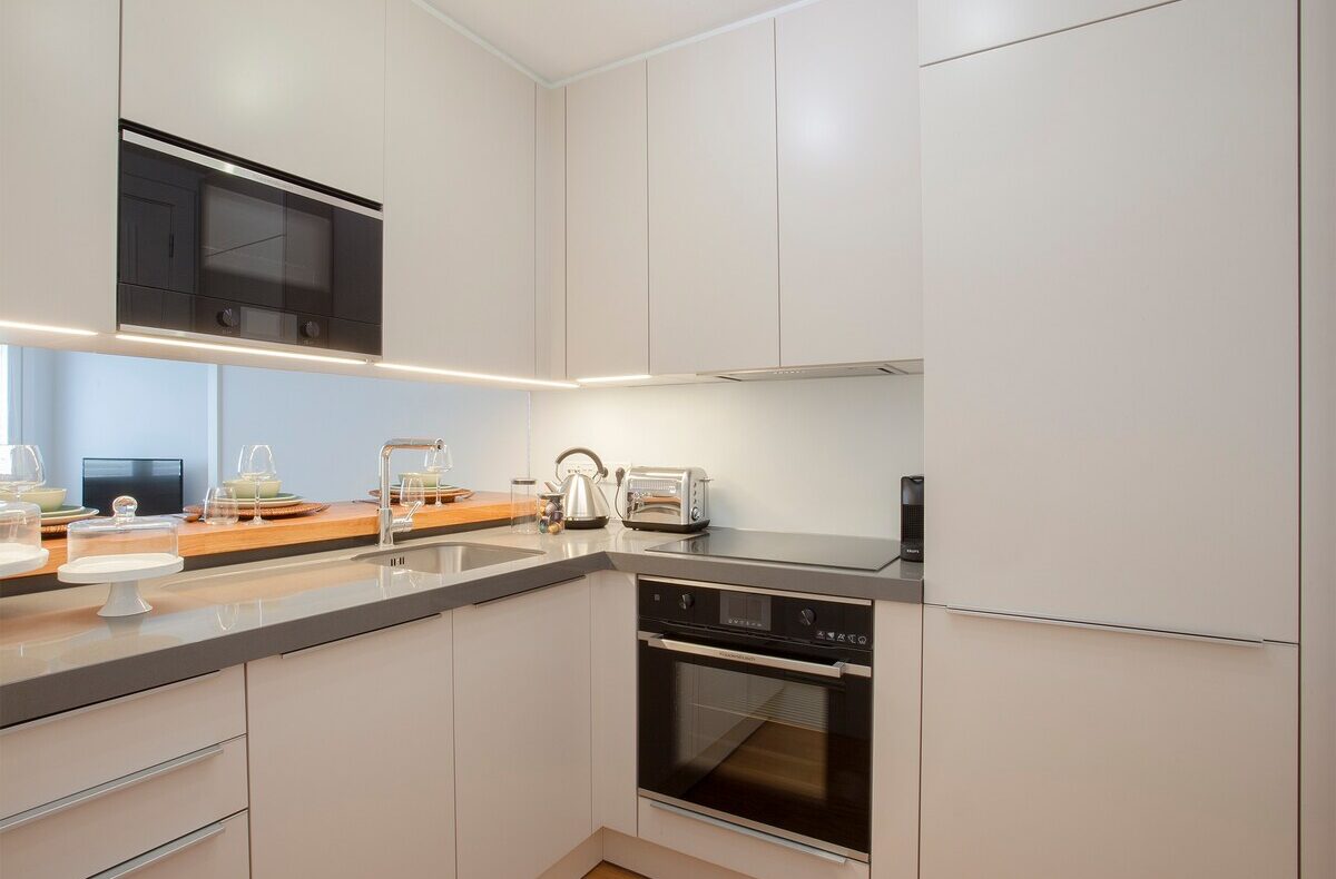 Terá um apartamento com um quarto, com cama de casal; uma casa-de-banho, com banheira; uma sala de estar com TV de ecrã plano, com canais por cabo e um sofá-cama, para uma pessoa adicional; a cozinha tem o essencial para a sua estadia, incluindo máquina de lavar roupa e máquina de lavar loiça.
