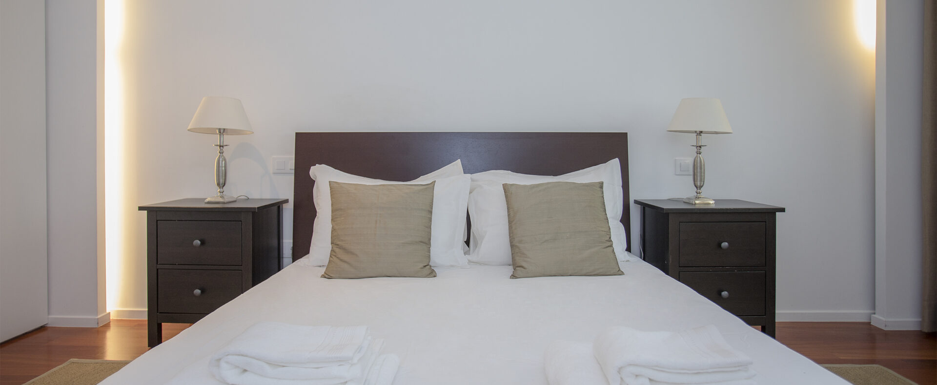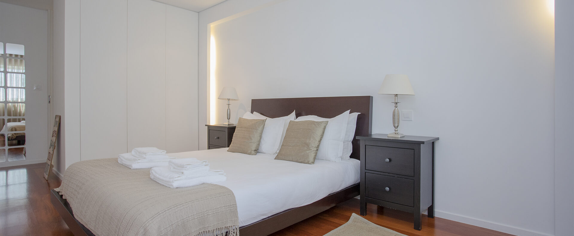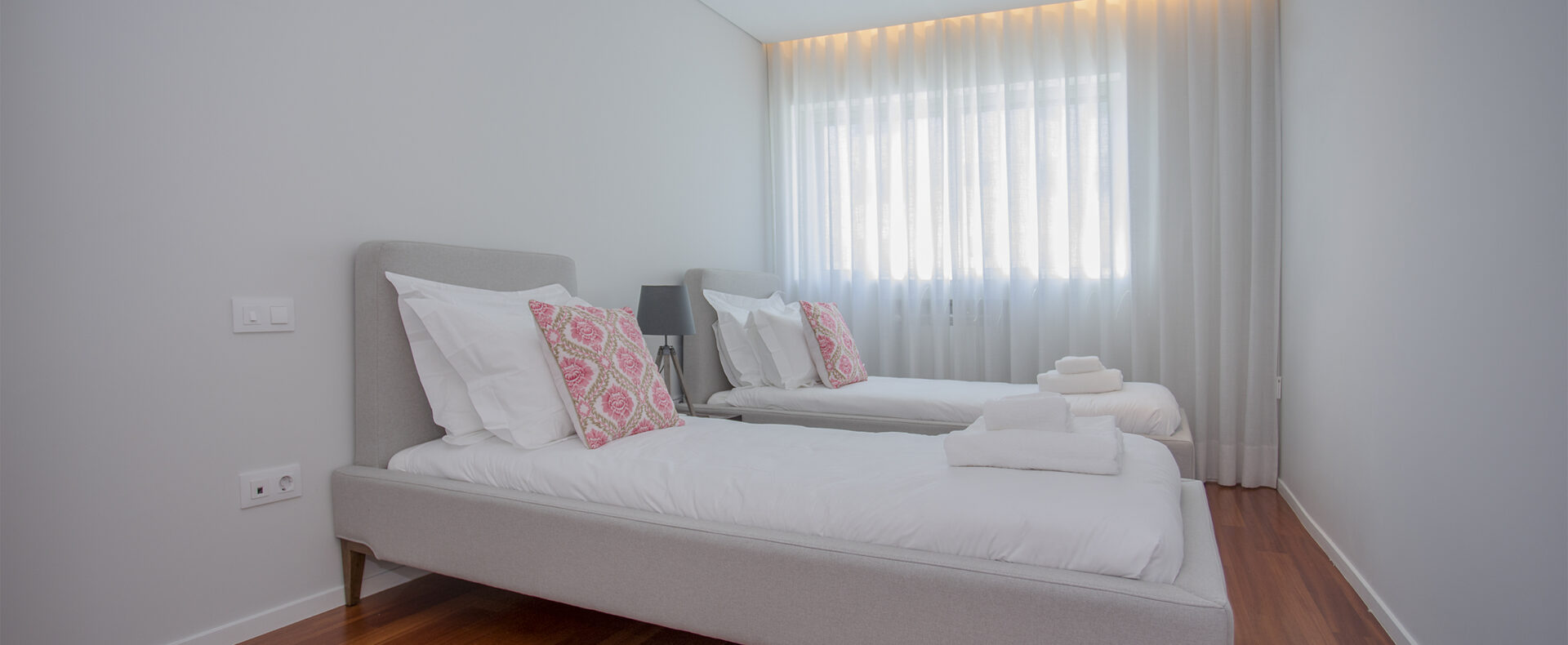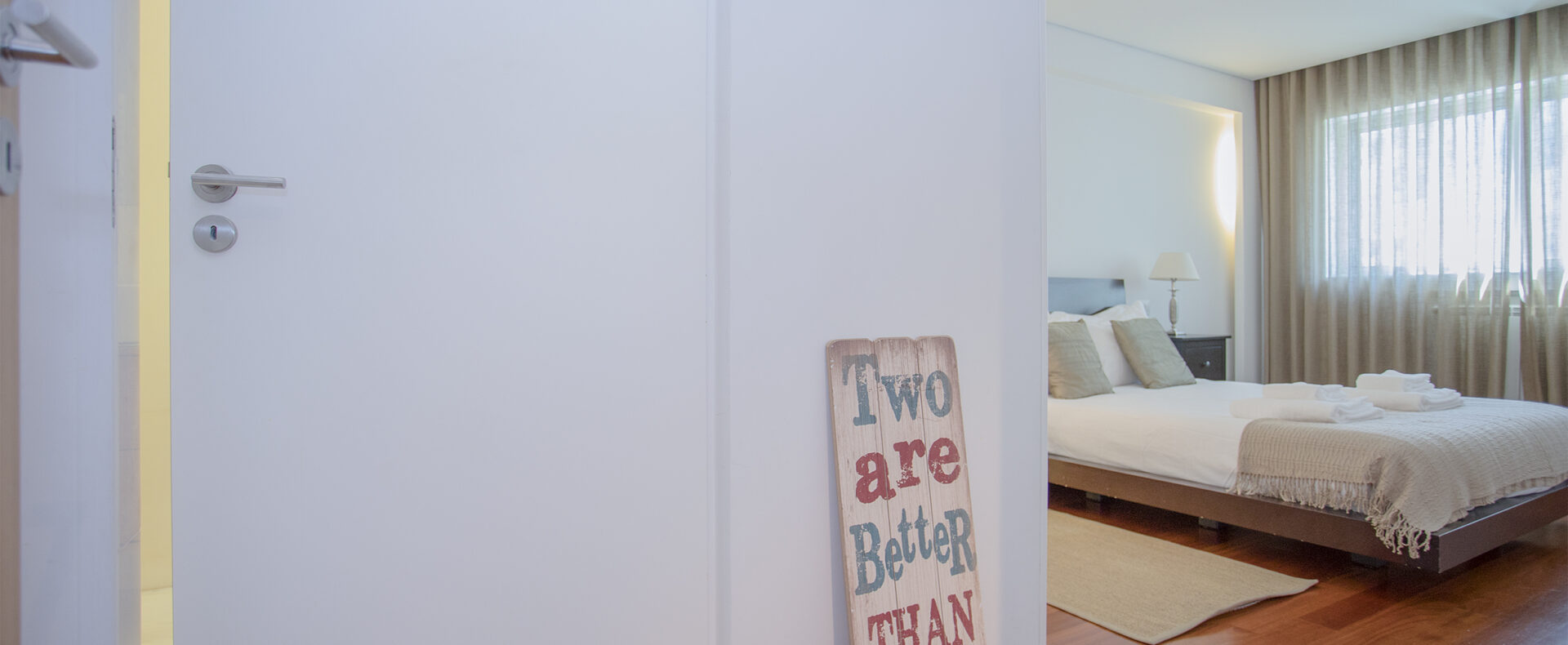 O apartamento tem dois quartos, um suite, com cama de casal e chuveiro, e outro com duas camas de solteiro; tem outra casa-de-banho, com banheira; uma sala de estar com TV de ecrã plano, com canais cabo, e Wifi; a cozinha tem tudo para a sua estadia, incluindo máquinas de lavar a roupa e loiça.