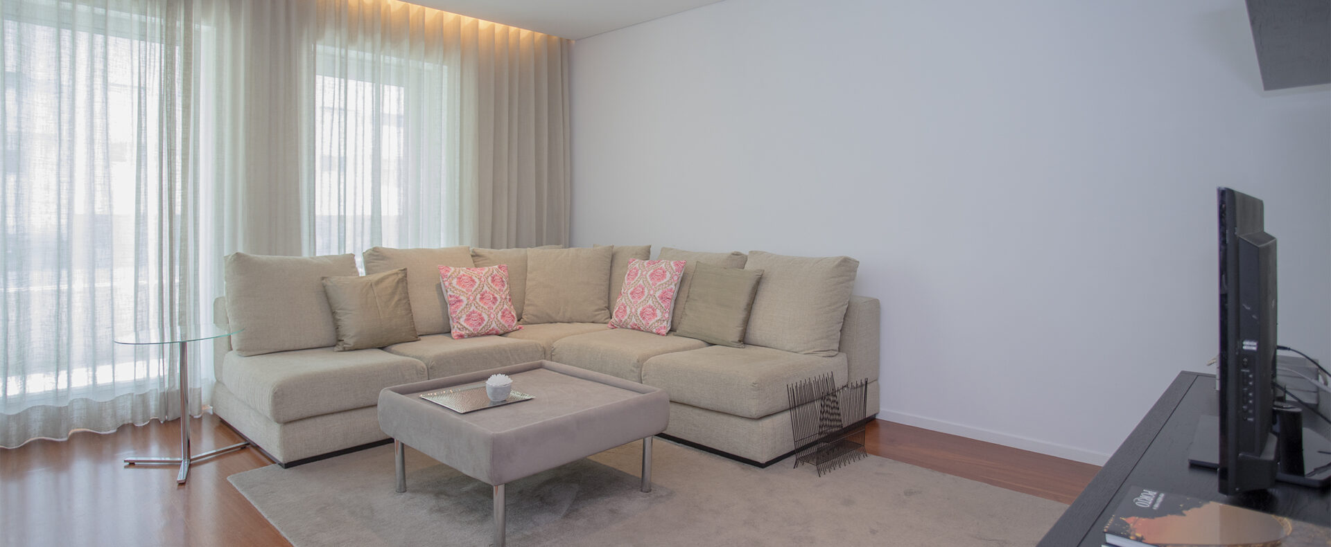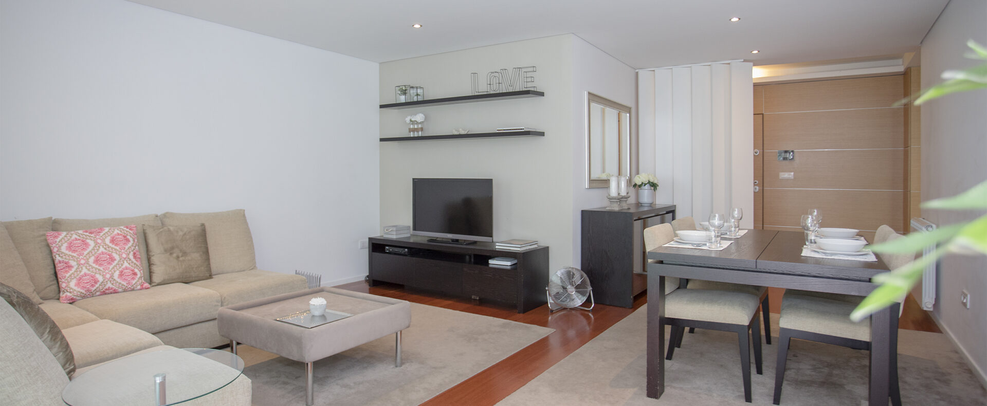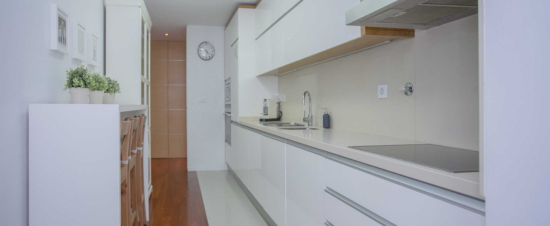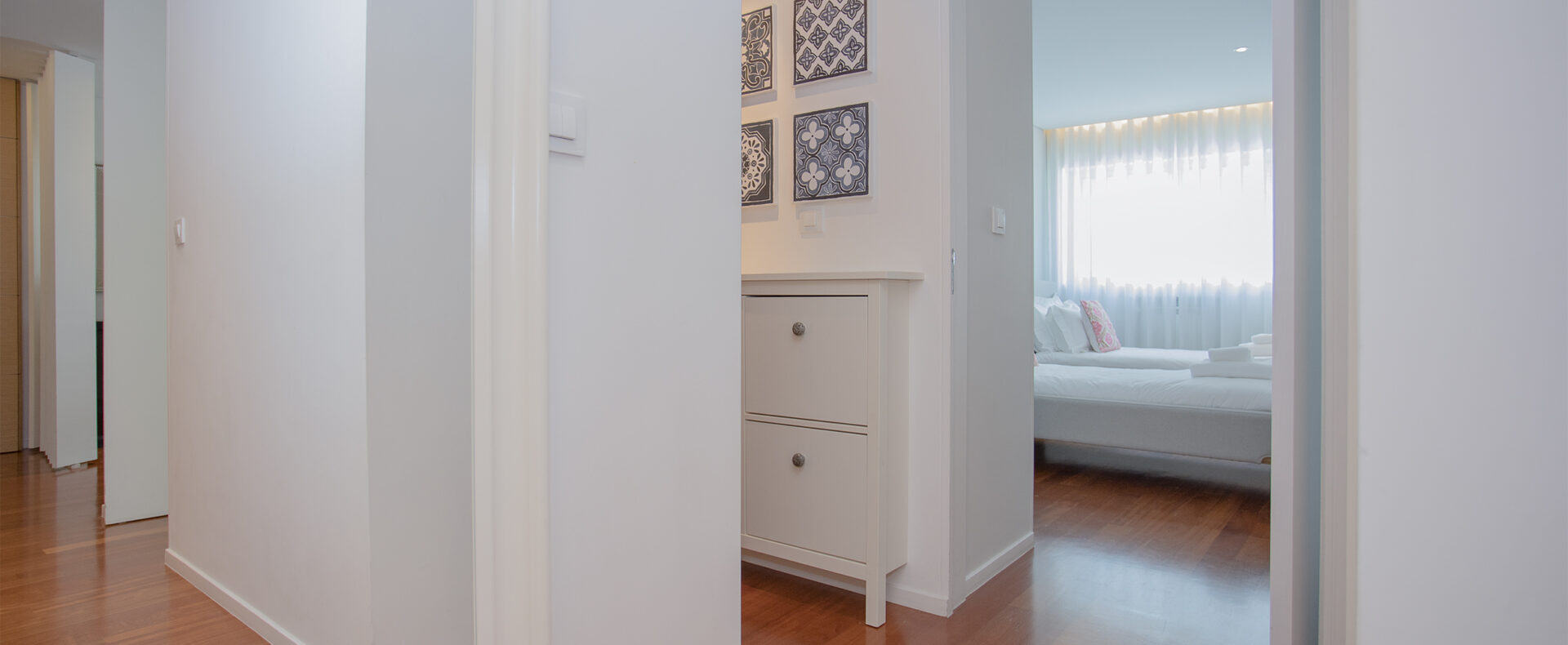 O apartamento tem dois quartos, um suite, com cama de casal e chuveiro, e outro com duas camas de solteiro; tem outra casa-de-banho, com banheira; uma sala de estar com TV de ecrã plano, com canais cabo, e Wifi; a cozinha tem tudo para a sua estadia, incluindo máquinas de lavar a roupa e loiça.