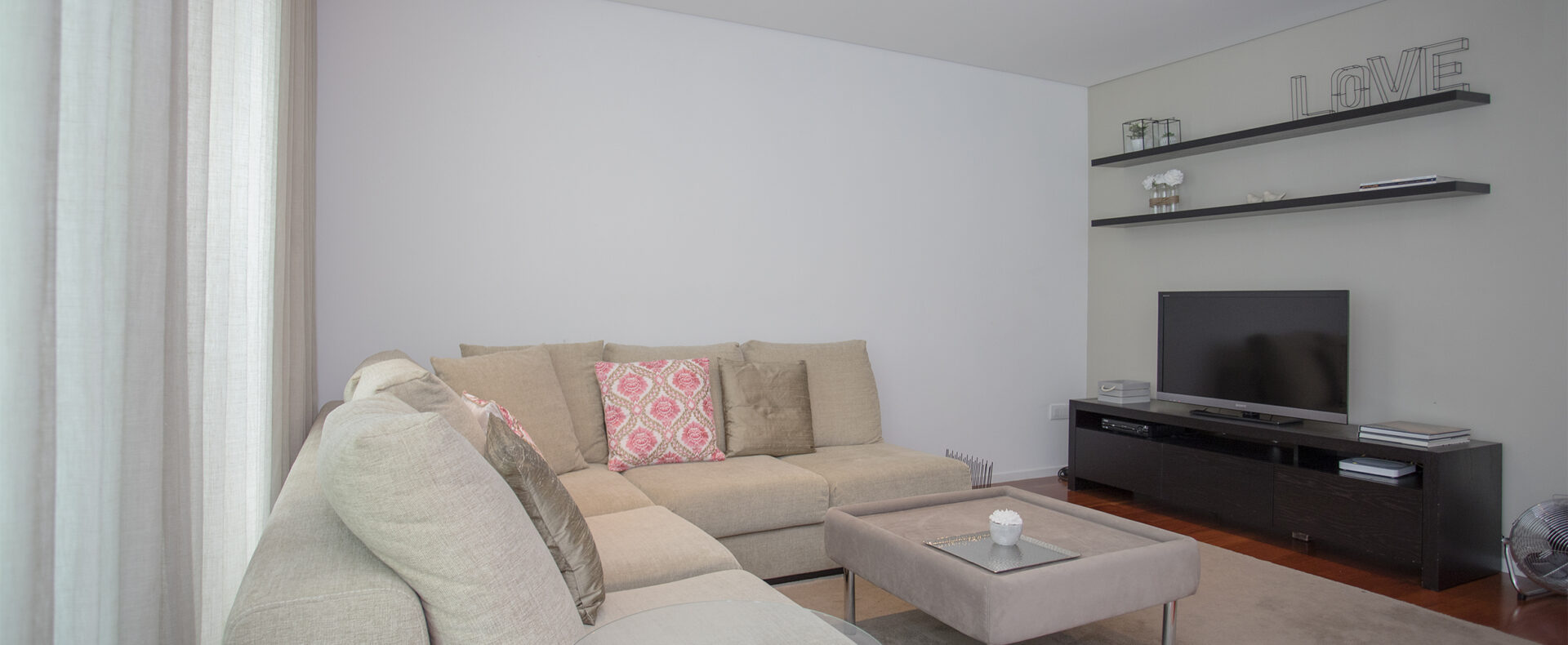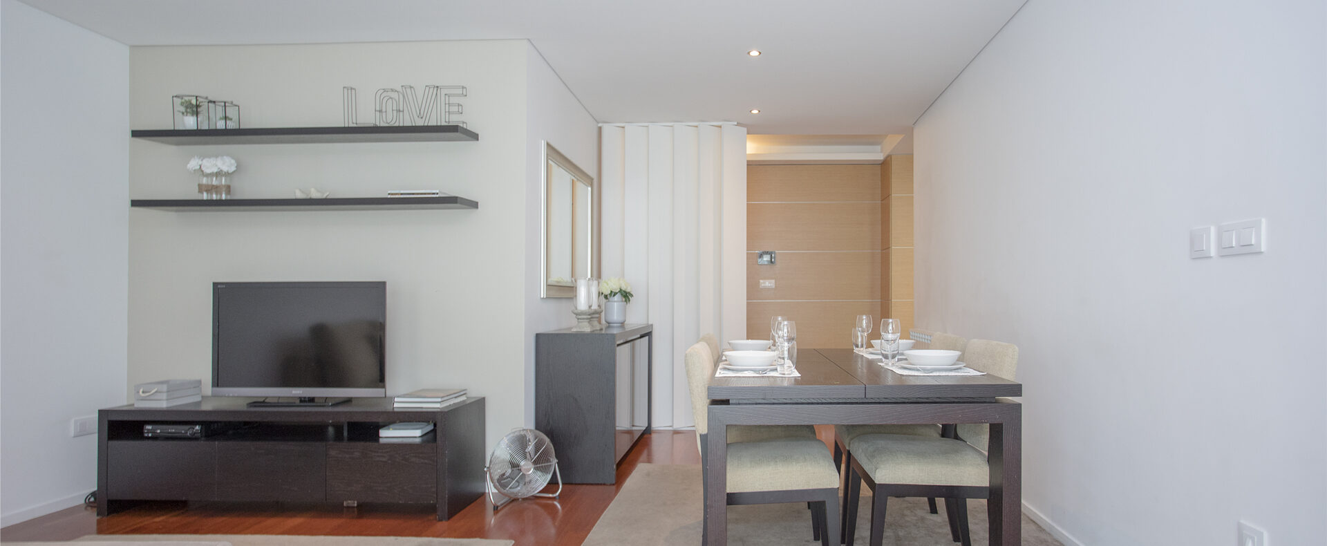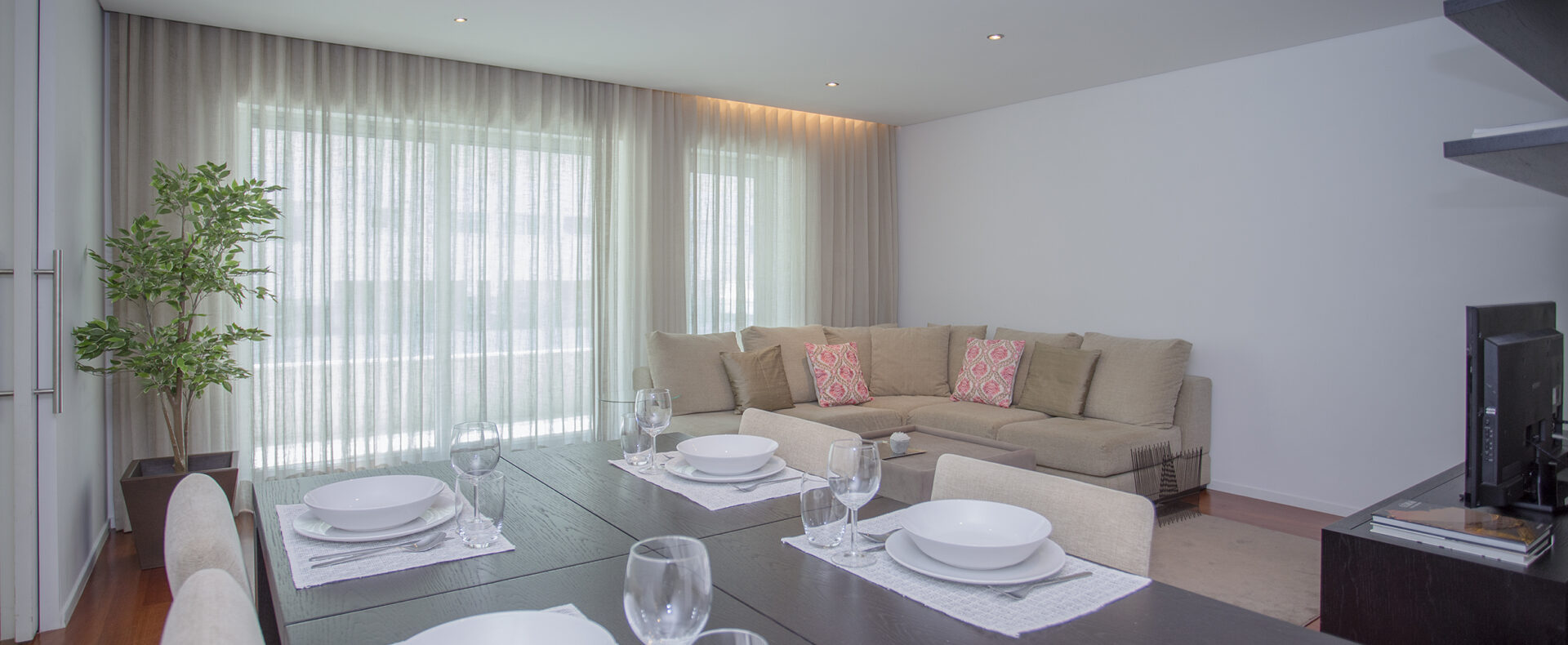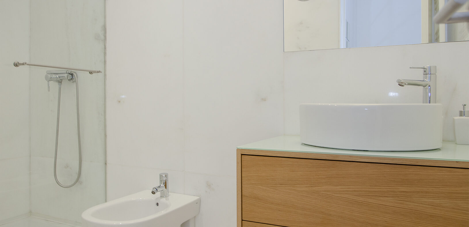 O apartamento tem dois quartos, um suite, com cama de casal e chuveiro, e outro com duas camas de solteiro; tem outra casa-de-banho, com banheira; uma sala de estar com TV de ecrã plano, com canais cabo, e Wifi; a cozinha tem tudo para a sua estadia, incluindo máquinas de lavar a roupa e loiça.