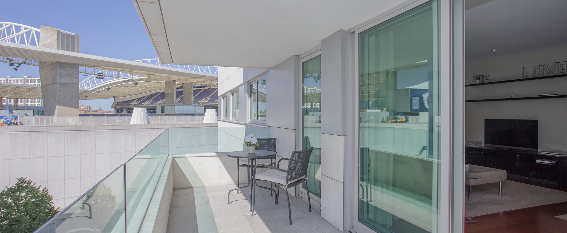 Saboreie a vista do Balcony Dragão View, onde irá ser recebido pela vista para o imponente Estádio do Dragão, desde a grande varanda do apartamento, respirando as memórias dos festejos que lá fizeram história.