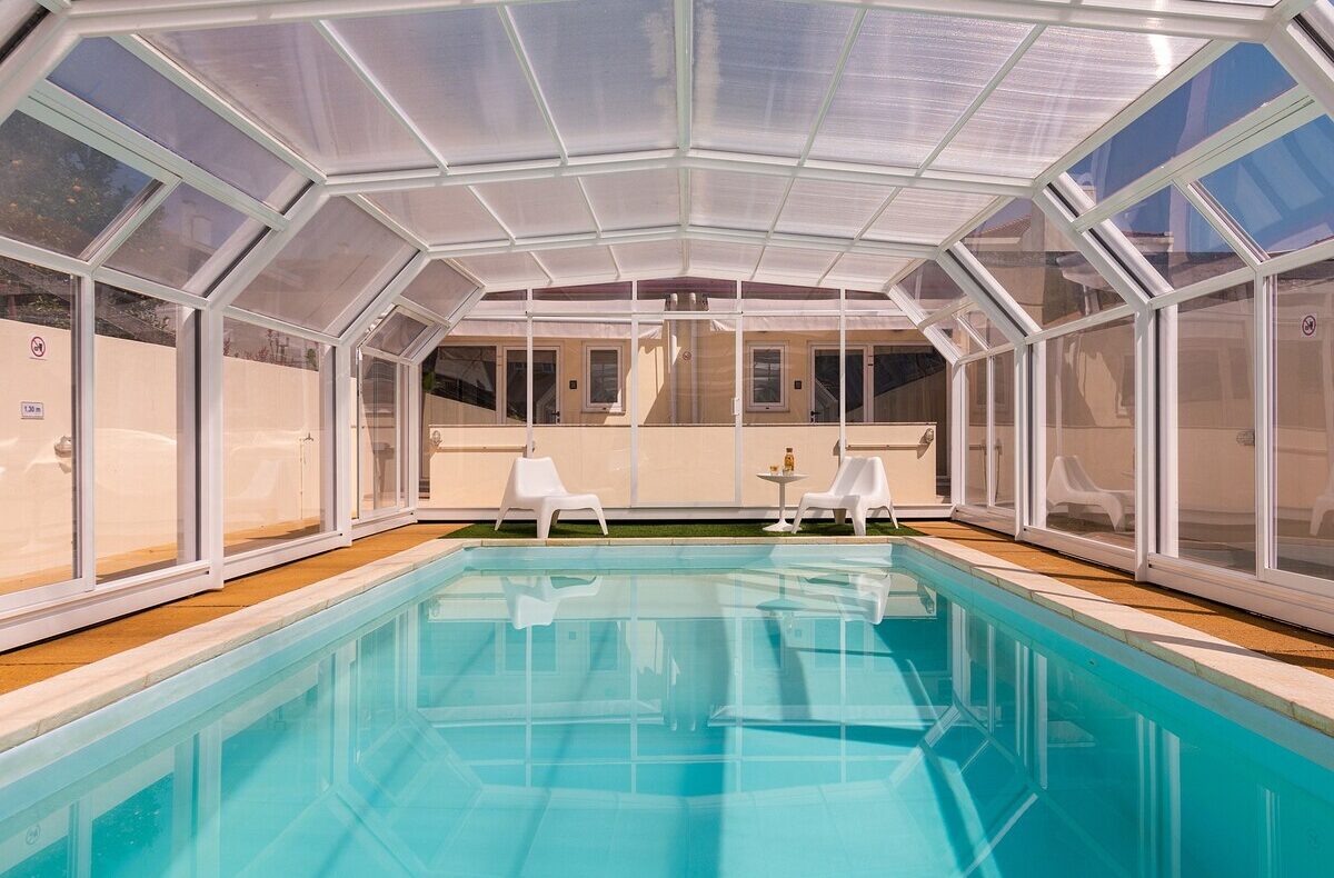From September to May, the pool is covered and heated.